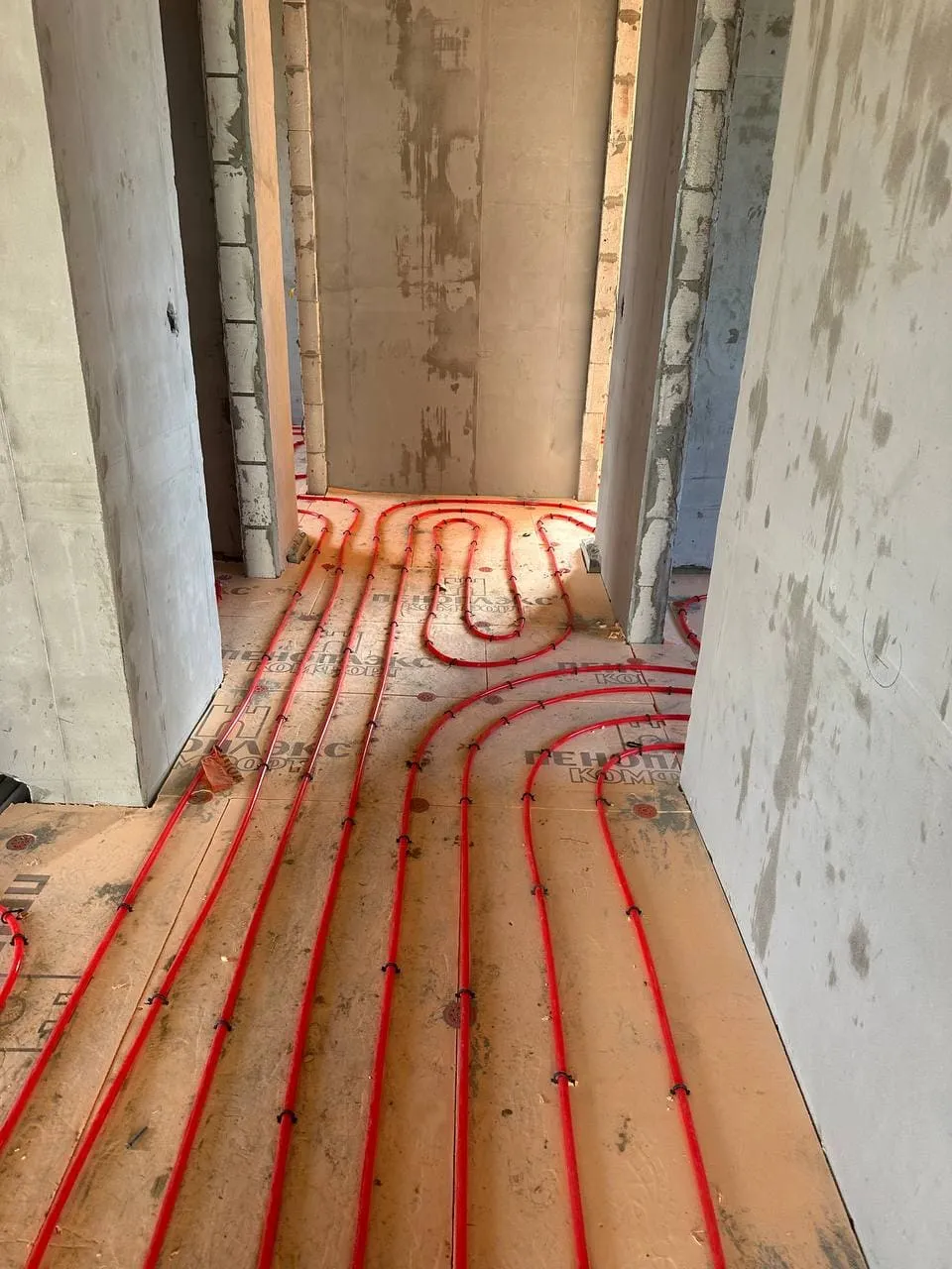 Если в полу будут проложены коммуникации (электрика, водопровод, канализация, тёплые полы), необходимо увеличить толщину стяжки: