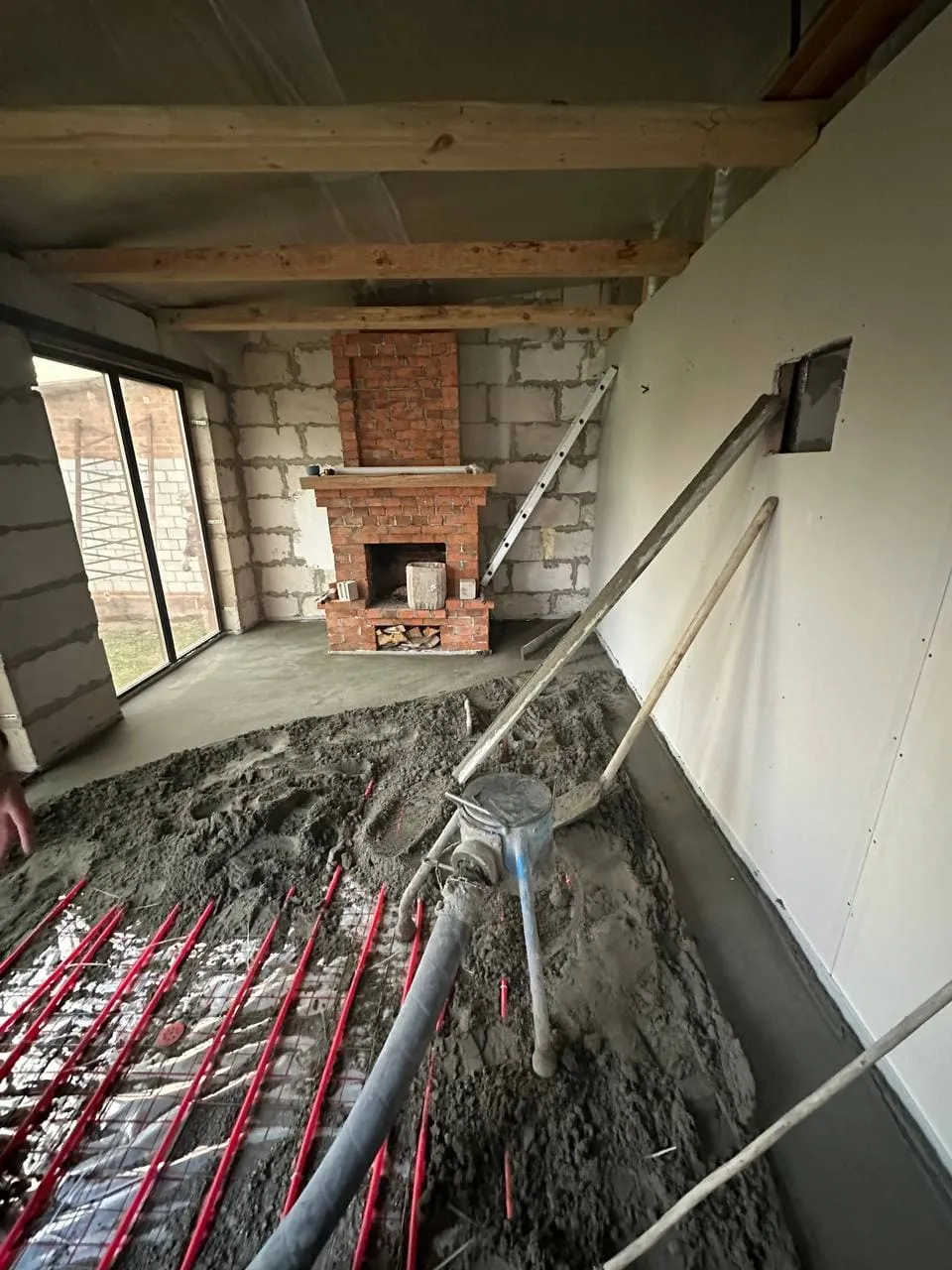 Мы выполняем полусухую стяжку пола «под ключ»: от подготовки основания до финальной затирки. Используем немецкое оборудование, качественные смеси и армирующие фиброволокна. Соблюдаем нормы СНиП, контролируем толщину слоя и ровность основания. За счёт опыта и механизации мы выполняем объект в 1 день, даже если площадь достигает 100–200 м².